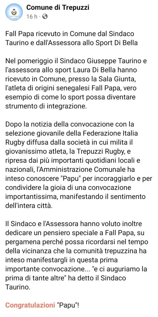 Fall Papa ricevuto dal Sindaco e dall’Assessora allo Sport di Trepuzzi su 27 gennaio 2023 da salentoxvtrepuzzirubgyin Senza categoria Condividi: Condividi su X (Si apre in una nuova finestra) X Condividi su Facebook (Si apre in una nuova finestra) Facebook Mi piace Caricamento... Correlati