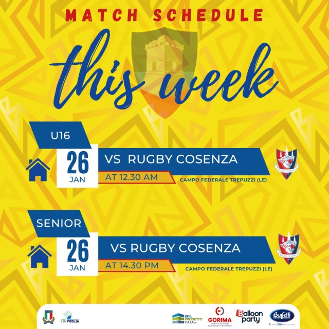 La Gorima risponde subito e realizza due mete nell’arco di pochi minuti, con Spedicato ed Elia. Ancora Matarrese dalla piazzola trasforma e chiude il primo tempo sul 15-7 per i salentini.